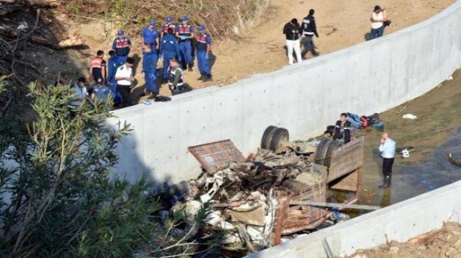 Katliam gibi kaza, geçen 14 Ekim günü İzmir Adnan Menderes Havalimanı yakınlarında meydana gelmişti. Ege kıyısından tekneyle Yunanistan'ın Samos Adası'na geçmek üzere insan tacirleriyle anlaştıkları öğrenilen yabancı uyruklu göçmenlerin kasasında bulunduğu kamyon su kanalına uçmuş, aralarında çocuk, bebek ve hamile kadının da bulunduğu 23 kişi hayatını kaybetmiş, 9'u çocuk 25 kişi de yaralanmıştı. Kazadan hemen sonra yola çıkıp durdurduğu araçla önce taksi durağına giden ardından da götürüldüğü hastanede yüksekten düştüğünü söyleyip olayı gizlemeye çalışan sürücü Mustafa Yılmaz ile birlikte bağlantıda bulunduğu 12 kişi gözaltına alınmış zanlılardan 11'i tutuklanmıştı.