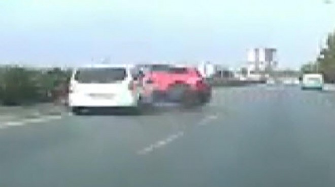 Kaza anı ise başka bir aracın kamerası tarafından anbean görüntülendi. (DHA)