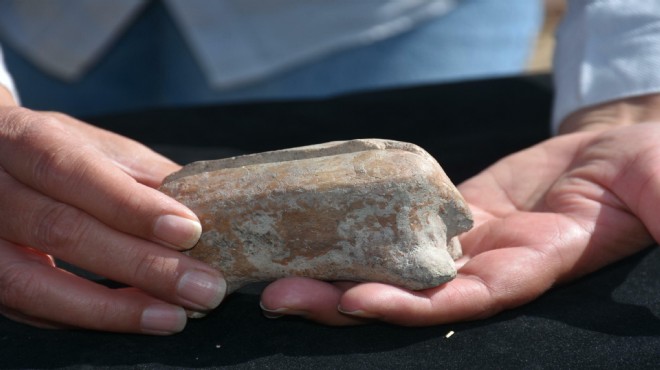 Ulucak Höyüğü'nün İzmir'in ilk yerleşim yeri olduğunu vurgulayan Prof. Dr. Çevik, "Ulucak, Batı Anadolu'nun en eski yerleşimlerinden birisi. Burada günümüzden 8 bin yıl öncesinde kil objelerin artığını görüyoruz. Bu buluntumuz, aslında kil malzemeden yapılmış eşsiz bir eser. Sap düzeltici ile ahşabı sürterek yuvarlak hale getirilmesi sağlanıyor ya da kemik iğnelerinin de yine sürterek pürüzsüz hale getirilmesi sağlıyor. İşlevsel olarak sap düzeltici. Bunu özel kılan hem işlevsel bir nesne hem de aynı zamanda hayvan biçiminde yapılmış bir eser. Büyükbaş hayvana benzetilmiş, kuyruk bölümünü görebiliyoruz. Sığır biçiminde şekillendirildiğini görüyoruz. Hem işlev hem sembolizm bir araya getirilmiş. 7 bin 700 yıl öncesine dayanıyor" diye konuştu. (DHA)