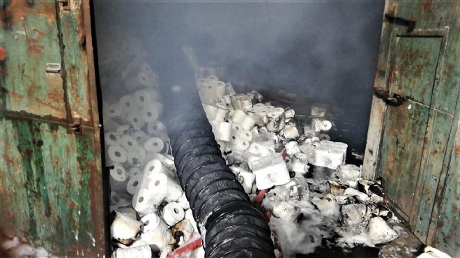 Depodaki kağıt havlu ve peçetelerin tutuşmasıyla hızla yayılan alevler depoyu sardı.