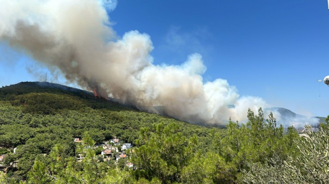 İzmir'in Urla ilçesinde çıkan orman yangınına havadan ve karadan müdahale ediliyor.
