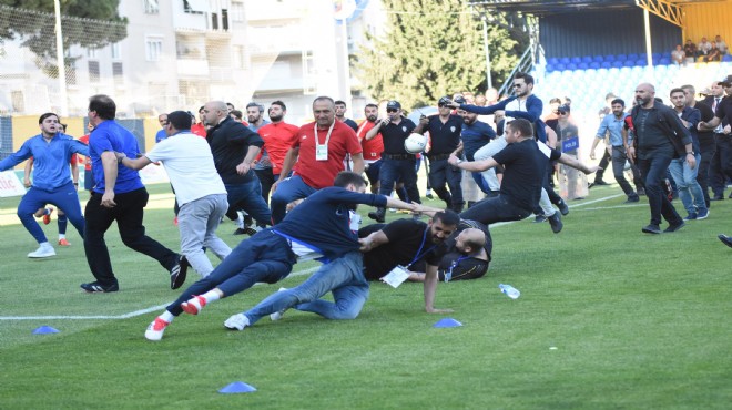 İki takım futbolcuları yumruk ve tekmelerle birbirlerine girerken, taraftarlar da tribünden inerek kavgaya dahil oldu, saha içi savaş alanına döndü.