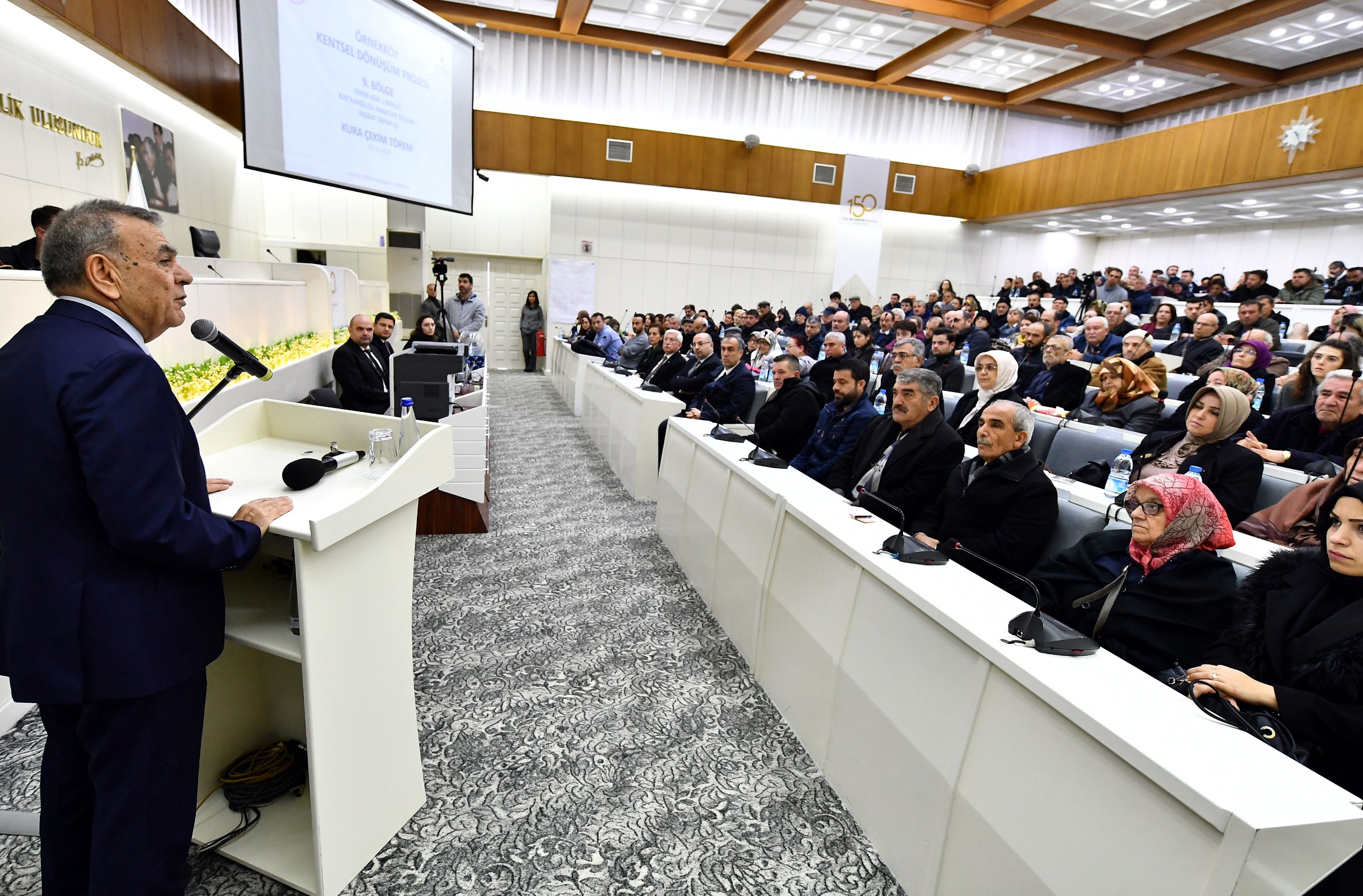 Kentsel dönüşümde belli ilkeler doğrultusunda ilerlediklerini belirten Büyükşehir Belediye Başkanı Aziz Kocaoğlu, "Öncelikle dönüşüm yerinde olacak. Vatandaş tapusunun olduğu yerde yaşamını sürdürecek. Kendi mahallesinde, kendi komşularıyla, ama daha sağlıklı ve konforlu evlerde oturacak. İlk koşulumuz bu.. İkinci önemli ilkemiz de, Belediye'nin buradan en ufak bir kar, rant almayacak olmasıdır. Bize, vatandaşını daha güvenli, daha konforlu ve çevresi daha yaşanabilir bir yerde yaşatmak gibi paradan çok daha ulvi olan şeref kalacak. Ve bunları yaparken mutlaka yüzde 100 uzlaşı olacak. Gayrimenkul sadece parayla alınıp satılan bir yer değildir. Orada yaşanmışlıklar, hatıralar vardır. Onun için dönüşüm çok hassas bir iştir” diye konuştu.