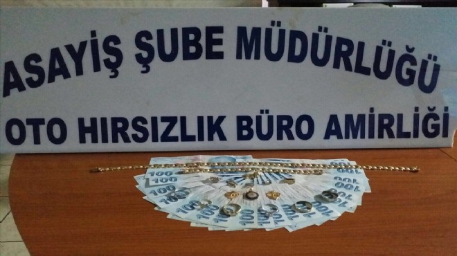 Alınan bilgiye göre, Narlıdere ilçesinde polise başvuran seyyar Milli Piyango bayisi, otomobilinden 20 bin lira, 500 gram altın ziynet eşyası ile 16 kazı kazan biletinin çalındığı şikayeti üzerine, İzmir Emniyet Müdürlüğü Asayiş Şubesi Oto Hırsızlığı Büro Amirliği ekipleri çalışma başlattı.