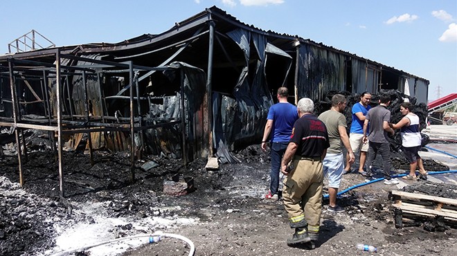 Yangın nedeniyle fabrikanın bahçesinde bulunan plastik borularda ve bir depoda hasar oluştu. (AA)