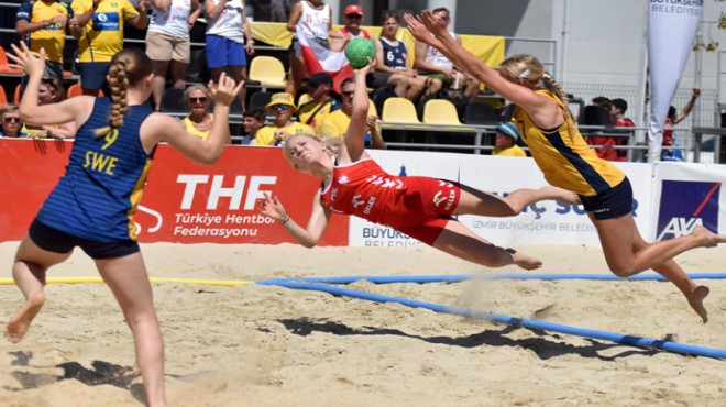 izmir'de düzenlenen EHF Avrupa U17 Plaj Hentbolu Şampiyonası, bugün oynanan ikinci gün maçlarındaki renkli görüntülerle devam etti. Avrupa Hentbol Federasyonu, Türkiye Hentbol Federasyonu ve İzmir Büyükşehir Belediyesi iş birliği ile İnciraltı Spor Tesisleri'nde organize edilen şampiyonada millilerimiz, erkeklerde günün ilk maçında Ukrayna'ya 2-1 yenildi.