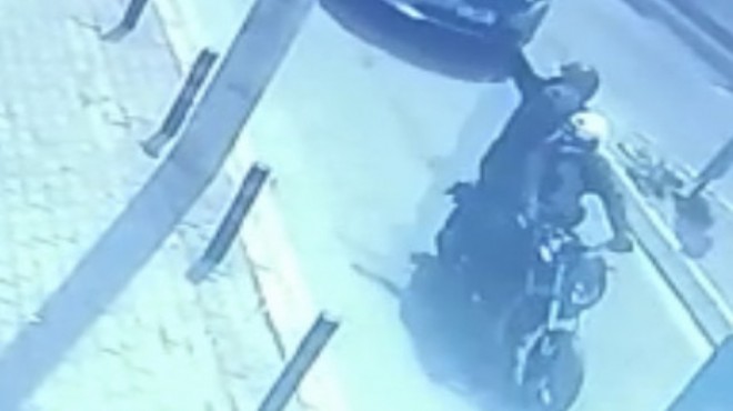 Karabağlar ilçesinde motosikletteki maskeli iki kişinin yoldan geçerken işyerlerine düzenlediği silahlı saldırı anı güvenlik kameralarına yansıdı.