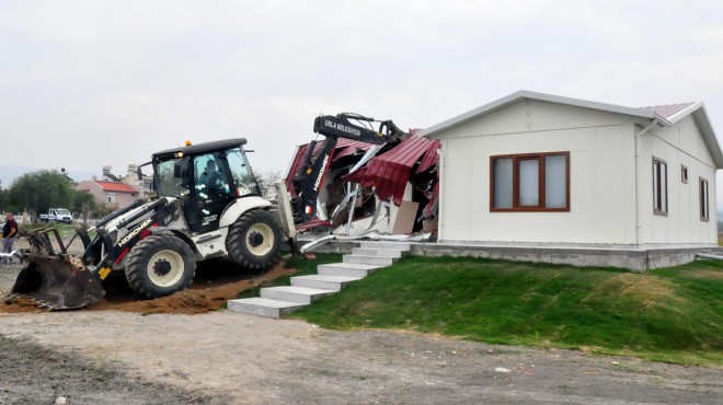 Çevre ve Şehircilik İl Müdürlüğü, Urla Kaymakamlığı ve Urla Belediyesi ekipleri, kaçak ev için harekete geçti. Ekipler ilk önce evin çevresindeki tel örgüleri kaldırdı. Toprak zemine dökülen betonun üstüne yapılan evin kapısı, balyozla kırıldı. Evin penceresine asılan Türk bayrağı görevlilerce alındı. Yine evin çevresine suni çimler serildiği belirlendi. Yıkım sırasında evde kimsenin bulunmaması nedeniyle, içerideki eşyalar, belediye görevlilerince dışarı çıkarıldı. Tahliye işleminin ardından, kepçeler ile yıkım işlemine başlandı.