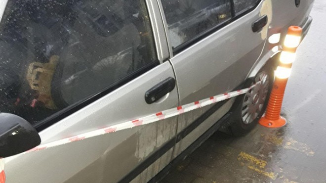Filiz, kördüğüm şeklinde bağlandığını belirttiği şeridi, yağmur altında bir süre çözmek için çabaladı. Duruma tepki gösteren Filiz, "Bu şekilde araçları damgalamak ve ifşa etmek ne derece aklı selim bir çözümdür?" dedi. (DHA)