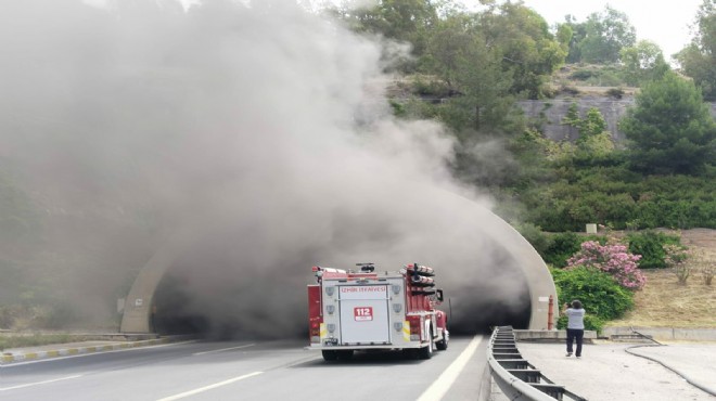 Bayraklı ile Bornova ilçeleri arasındaki tünellerde 35 TKD 58 plakalı tırda henüz belirlenemeyen nedenle yangın çıktı.