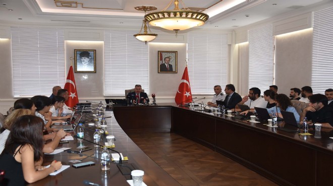 Vali Süleyman Elban, İzmir'deki güvenlik ve asayiş faaliyetlerine ilişkin basın toplantısı gerçekleştirdi. Vali Elban'ın başkanlığındaki toplantıya; İl Emniyet Müdürü Celal Sel, Sahil Güvenlik Ege Deniz Bölge Komutanı Tuğamiral Tayfun Paşaoğlu ve İl Jandarma Komutanı Tümgeneral Metin Düz katıldı.