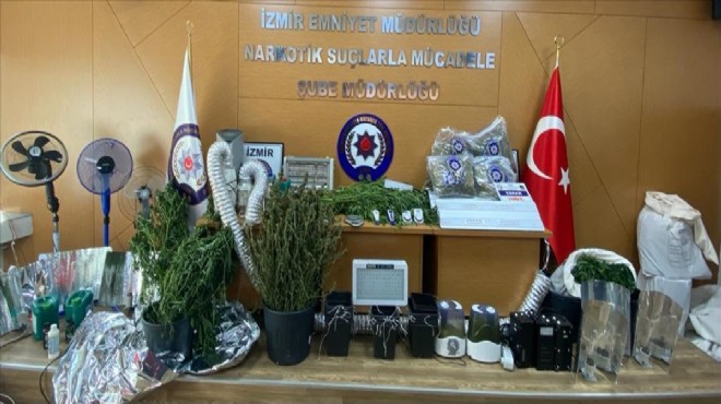 İzmir'de Hint keneviri yetiştirmek için evlerin odalarına ve kıyafet dolabına özel düzenek kurdukları belirlenen 10 zanlı gözaltına alındı.