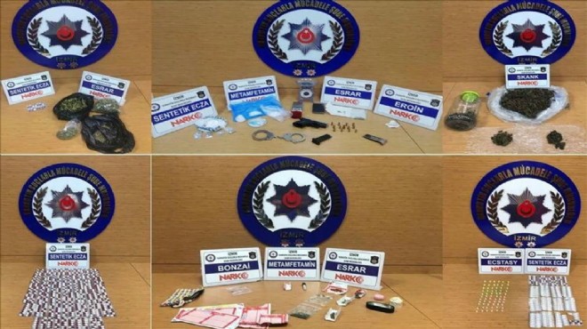 İzmir Narkotik Suçlarla Mücadele Şube Müdürlüğü ekipleri, kent genelinde 19-23 Ağustos tarihlerinde, 31 ayrı operasyon düzenledi.