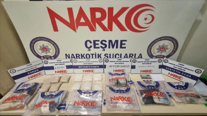 Çeşme Emniyet Müdürlüğüne bağlı Narkotik Büro Amirliği ekipleri, ilçedeki 1 evde uyuşturucu bulundurulduğu bilgisine ulaştı.
