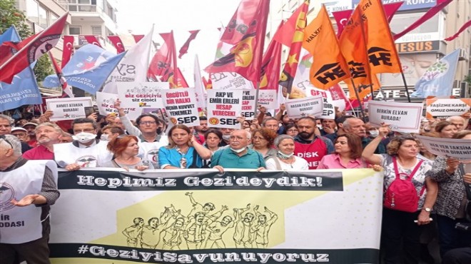 Mahkemenin kararlarına ülke genelinde olduğu gibi İzmir’de de protesto edildi. Alsancak Türkan Saylan Kültür Merkezi önünde bir araya gelen Emek ve Demokrasi Güçleri adına yapılan ortak açıklamayı DİSK Ege Bölge Temsilcisi Memiş Sarı okurken mahkeme kararlarına tepki gösterilerek ‘Biz uğrunda mücadele ettiğimiz değerlerin, hayatımızın en anlamlı ve onurlu günleri olan Gezi direnişinin arkasındayız; arkadaşlarımızın yanındayız’’ açıklaması yapıldı.