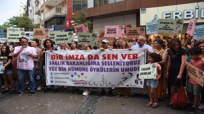İzmir’in Alsancak semti Kıbrıs Şehitleri Caddesi üzerinde toplanan yaklaşık 50 kişilik grup, Eylem Şen Yazıcı ile Çağdaş Yazıcı’nın Juvenil Miyelomonositik Lösemi (JMML) hastası olan ve Antalya’daki bir hastanede tedavi gören kızları Öykü Arin için başlatılan ‘Donör ol, umut ol’ kampanyası sonrası toplanan 100 bine yakın kan örneğinin işlenmesi için Sağlık Bakanlığı’na çağrıda bulundu. Grup, kan örneklerinin taranması için başlatılan imza kampanyasına da destek verilmesini istedi. Bazı kadınlar açıklamaya küçük çocukları ile birlikte katıldı. Katılımcılar, üzerinde ‘Öykü Arin’in sesini duyun’, ‘Yaşasın çocuklar’ yazılı dövizler taşıdı. Açıklamayı Öykü Arin’in dayısı Erbil Şen yaptı.