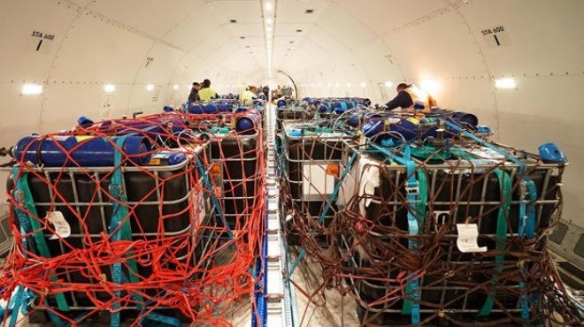 Ege denizinde yetiştirilen balıklar, Boeing 777F geniş gövde kargo uçağıyla ihraç edildi. Su ürünleri mühendislerinin refakat ettiği taşımada, yavru çipura balıklarının 1 saatlik aralıklarla ph dengesi, oksijen ve su sıcaklık seviyeleri kontrol edildi.