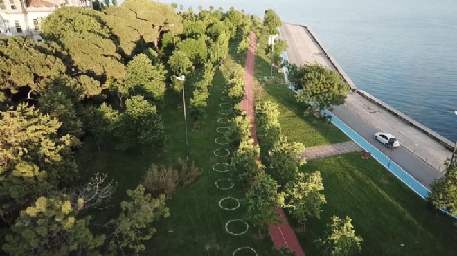 Sağlık Bakanı Fahrettin Koca'nın açıkladığı kontrollü sosyal hayat parolası kapsamında, birçok iş kolu gerekli önlemleri alarak yeniden faaliyete geçerken, bir yandan da sosyal hayatın kontrolü için çalışmalara başlanmış, İzmir Büyükşehir Belediyesi, Alsancak ve Karşıyaka'daki sahil şeritlerinde, 2 metre genişliğinde beyaz renkli çember çizmişti.