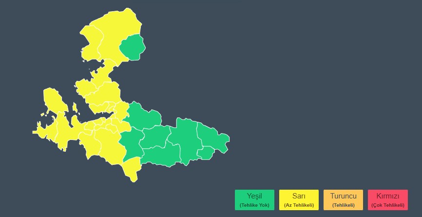 Meteoroloji yetkilileri, sarı kod verilen bölgelerde özellikle yağış ve rüzgârın oluşturabileceği aksamalara karşı vatandaşların tedbirli olmasını istedi.