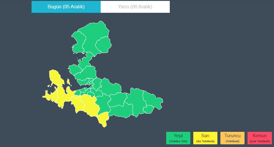Hava durumu potansiyel tehlikelidir: Tahmin edilen meteorolojik hadise olağandışı olmamakla birlikte, meteorolojik şartlardan etkilenebilecek faaliyetler konusunda dikkatli olunmalıdır.