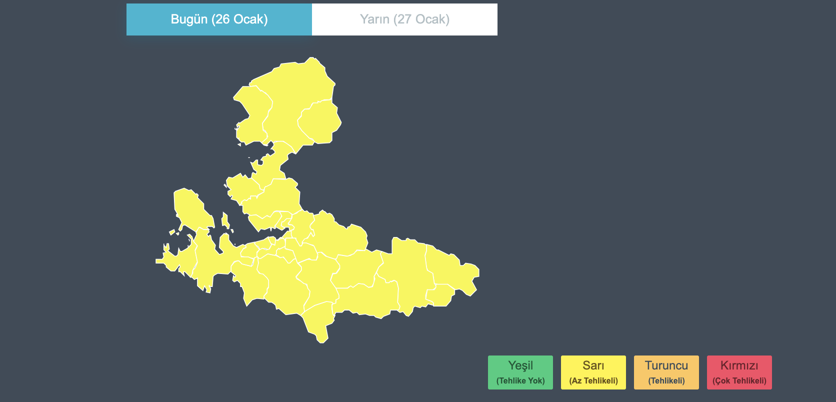 Sarı kodlu uyarı tüm ilçeleri kapsıyor