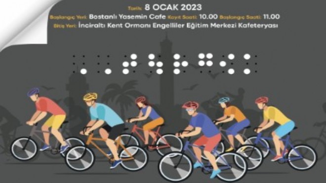 İzmir Büyükşehir Belediyesi öncülüğünde görme engelli bireyler için 8 Ocak’ta bisiklet turu düzenlenecek. Türkiye Görme Özürlüler Kitaplığı (TÜRGÖK), Engelsiz İzmir, Umuda Pedal Derneği ve Eşpedal Derneği işbirliğiyle yapılacak ekinlikle, yaklaşık 200 bisikletli “Görmeyenler Daha Çok Kabartma Kitap Okusun Diye Umuda Pedal Çeviriyoruz” sloganıyla bir araya gelecek. Bostanlı Yasemin Kafe’den 11.00’de başlayacak tur İnciraltı Kent Ormanı Engelliler Eğitim Merkezi’nde sonlanacak. Bisiklet turuyla, görme engellilere yönelik daha çok kabartma kitap basılabilmesi için farkındalık oluşturulması hedefleniyor.