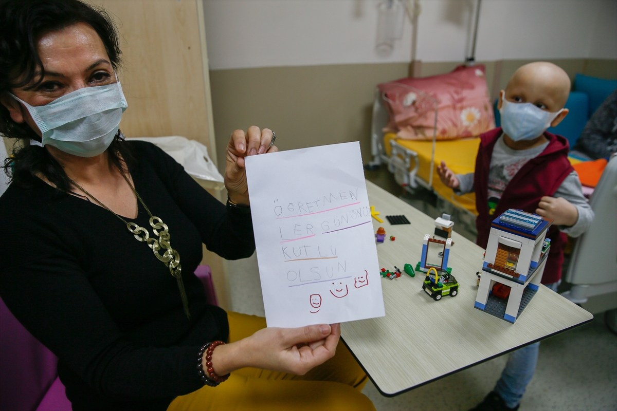 Bu arada, hastanedeki öğrenciler, fedakar öğretmenlerinin Öğretmenler Günü'nü unutmadı. Öğrenciler, hazırladıkları çeşitli hediyelerle, eğitim hayatından kopmamalarını sağlayan öğretmenlerine teşekkür etti. (AA)
