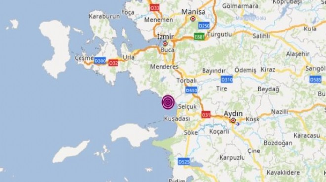 Afet ve Acil Durum Yönetimi Başkanlığı Deprem Dairesi Başkanlığı verilerine göre, Kuşadası Körfezi İzmir'in Menderes ilçesi açıklarında bugün saat 17.56'da Richter ölçeğine göre 3.9 büyüklüğünde deprem meydana geldi. Denizin 6,96 kilometre derinliğinde meydana gelen deprem Aydın ve İzmir'de de hissedildi. Kısa süreli paniğe neden olan depremde, ilk belirlemelere göre can ve mal kaybı yaşamadı. (DHA)
