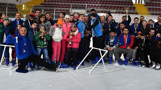 İzmir Büyükşehir Belediyesi’nin önemli cazibe merkezlerinden Bornova Aşık Veysel Rekreasyon alanı içindeki Uluslararası Buz Sporları Salonu, toplumun her kesimine spor yapma olanağı tanıyor. Salona gelerek hem buz pateni eğitimi alan hem de gönüllerince eğlenen engelli çocuklar, bu kez düzenlenen özel bir etkinlik kapsamında bir araya geldi. Programa katılan tüm engelli sporculara ise şampiyonluk madalyası verildi.