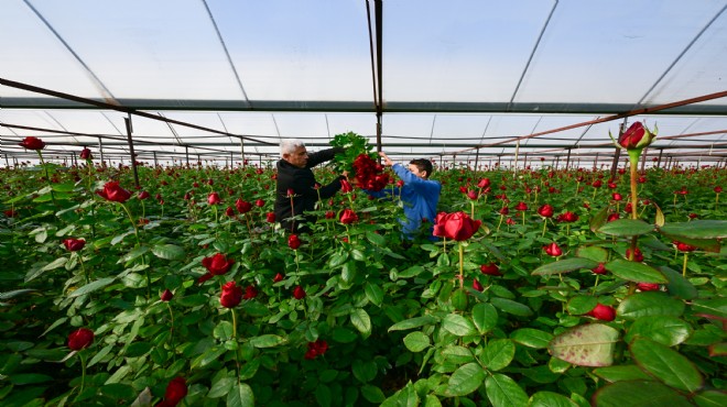 Sevgiliye kırmızı gül alınmasıyla özdeşleşen 14 Şubat Sevgililer Günü öncesinde, gül üretim lideri İzmir'de hasat yoğun olarak devam ediyor.