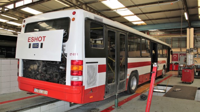 ESHOT Gediz Garajı’ndaki atölyelerde etap etap bakıma alınan BMC ve Temsa markalı otobüsler tamamen elden geçiriliyor. Motor ve elektrik aksamları, koltukları, boyaları ve kuşakları yenilenen araçların klima bakımları da yapılıyor. Program dahilinde 450 otobüsün yenileme işlemleri yapılacak.