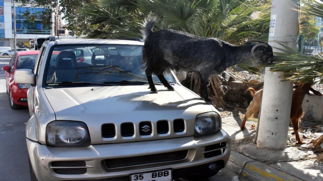Adalet Mahallesi’nde Manas Bulvarı üzerinde bulunan ve 200 metrelik yüksekliğiyle Avrupa’nın 5'inci, Türkiye’nin de 2’inci ikiz kulesi olan Folkart Towers’ın çevresindeki araçların üzerinde keçileri görenler şaşkınlıklarını gizleyemedi. Sahibinin belli olmadığı ve ahırdan kaçtığı tahmin edilen keçiler, araçların üzerine çıkıp ağaç dallarını yiyerek karınlarını doyurdu. Keçiler bunu yaparken de üzerine çıktıkları araçlara zarar verdi. Keçilerin ziyafetini caddeden geçenler telefonlarıyla görüntüleyerken bazıları da keçilerin araçlara zarar vermesine tepki gösterdi.