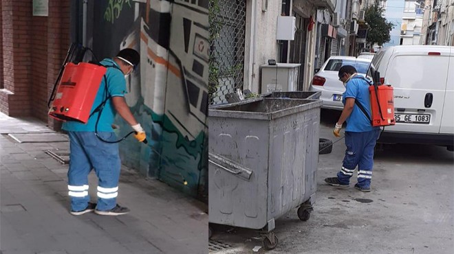 Özellikle hafta sonları tüm İzmir’in buluşma noktası haline gelen Alsancak’ta da her pazartesi günü, özel bir çalışma yapılıyor. Rutin temizlik çalışmalarına ek olarak, vatandaşların yoğun olarak bulunduğu barlar bölgesi civarı dezenfekte ediliyor ve koku giderici özel maddeler kullanılıyor.