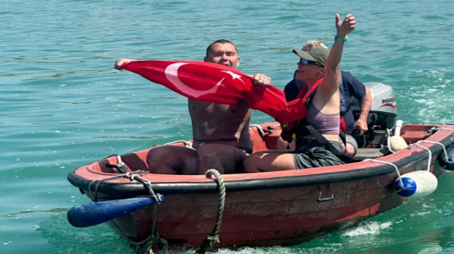 Türk bayrağı ile kıyıya çıktı