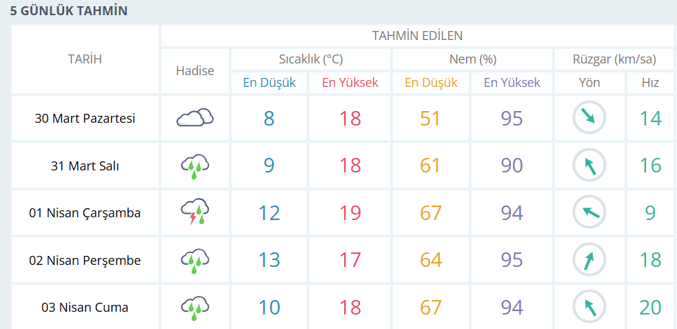 5 GÜNLÜK HAVA DURUMU: