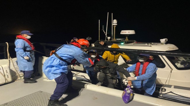 Çeşme Karaada'da saat 22.50 sıralarında bir grup kaçak göçmenin yardım talebinde bulunduğu ihbarını alan Sahil Güvenlik ekipleri adada mahsur kalan 20 kaçak göçmeni kurtardı.