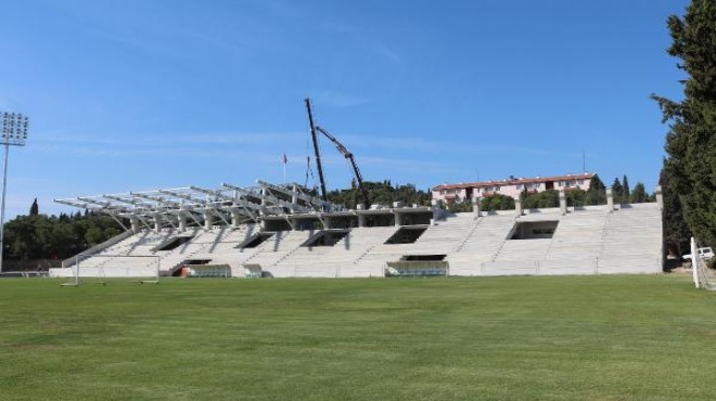 Sahaya çim serilmeye başlandı. Çevre düzenlemesine geçilen bu stat da ligin ikinci yarısına hazır olacak. Stadı ilçenin 3'üncü Ligdeki temsilcisi Tire 1922 Spor kullanacak.