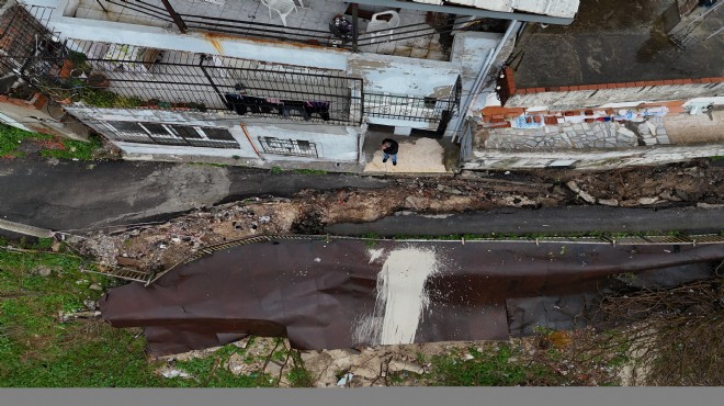 Mahalle sakinlerinden Ömer Eği, 15 gün önce yolda hafif bir yarığın oluştuğunu, bunun üzerine belediye ekiplerin şerit çektiğini anlattı.