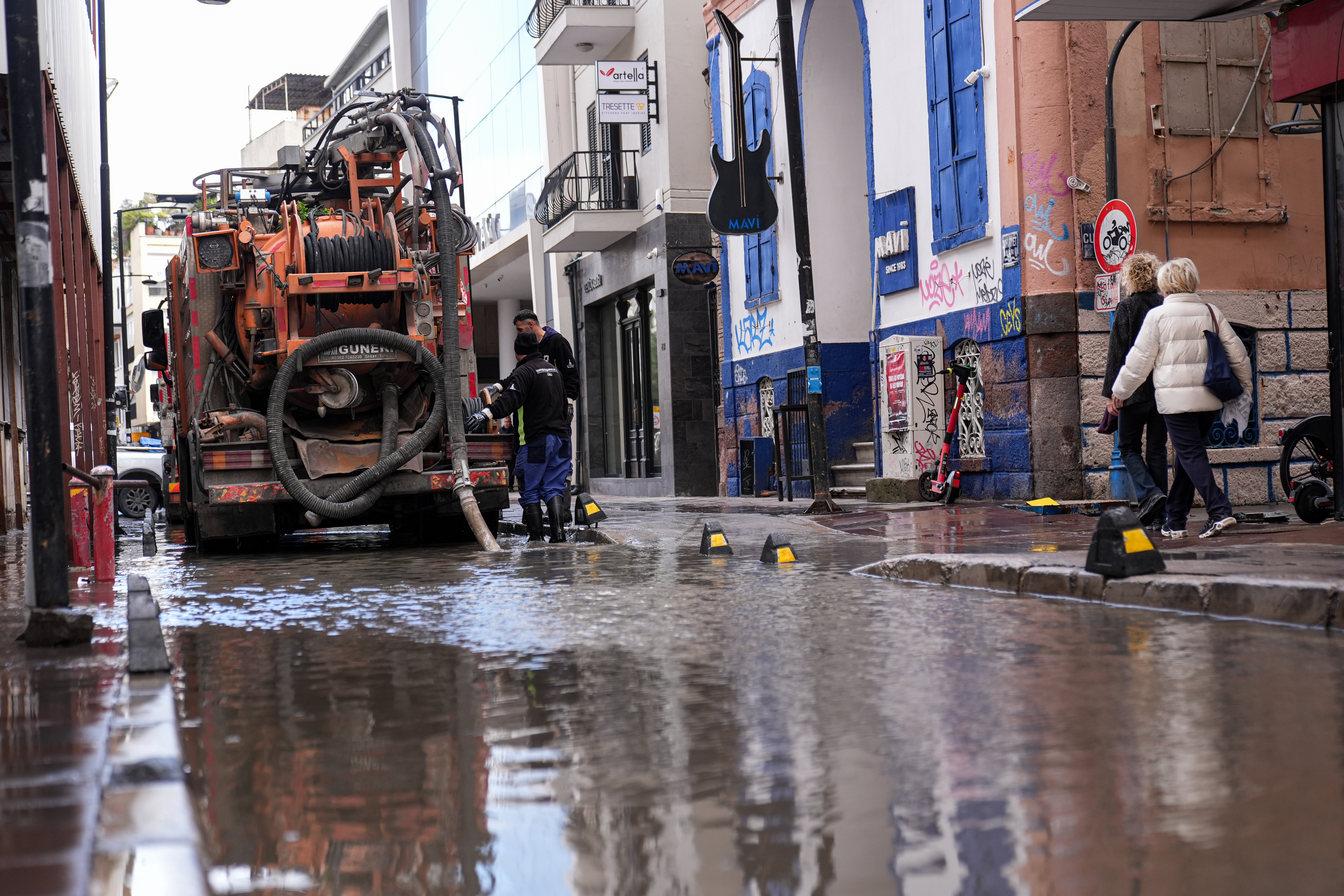 Kordon bölgesinde altyapı sorunu bulunduğunu aktaran Kehlibar, "Su giderlerinde suyun gitmesi gerektiği yerde daha da yukarı çıkıyor çünkü bütün kanallar dolu ve 60 yıllık bir altyapı var. Altyapı yenilenmeden hiçbir şey olmaz. Sabah dükkana geldiğimizde 30 santim su var. Sabah saat 5'ten beri buradayız ve belediye ekiplerini çağırdık. Saat 10 gibi geldiler, suyun yarısını çekebildiler. Ellerindeki tesisat yetersiz olduğu için yarısını çekemediler." dedi.