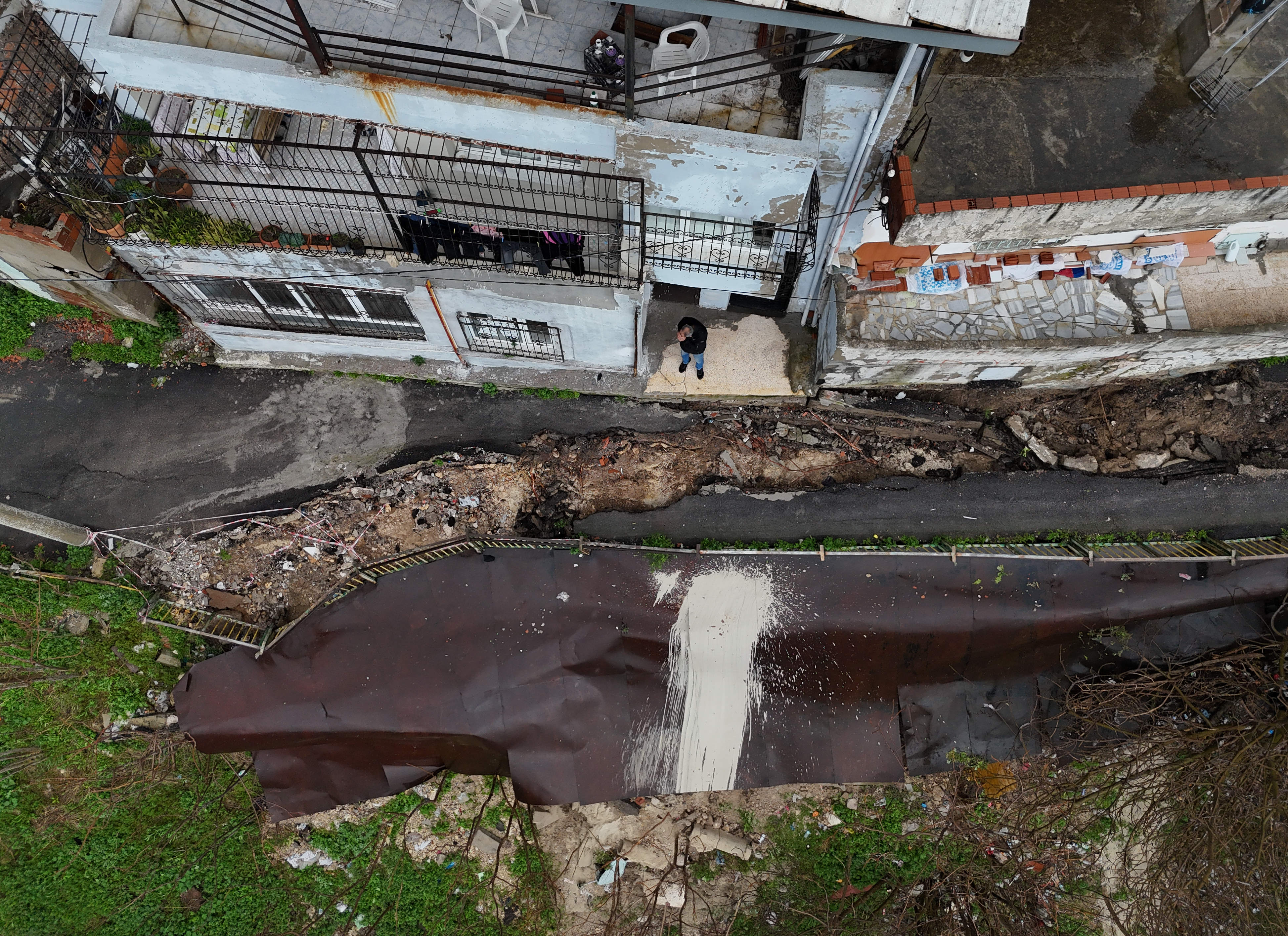 Dün gece sağanağın ardından yolun tamamen çöktüğünü dile getiren Eği, "Belediyeye haber verdik, ilgileneceklerini söylediler ama henüz gelen yok. Evlerde herhangi bir sorun yok. Çökme nedeniyle tedirginiz. Yolun durumu, çocuklar ve bizim için tehlike. Yetkililerden müdahale etmelerini bekliyoruz." diye konuştu. (AA)