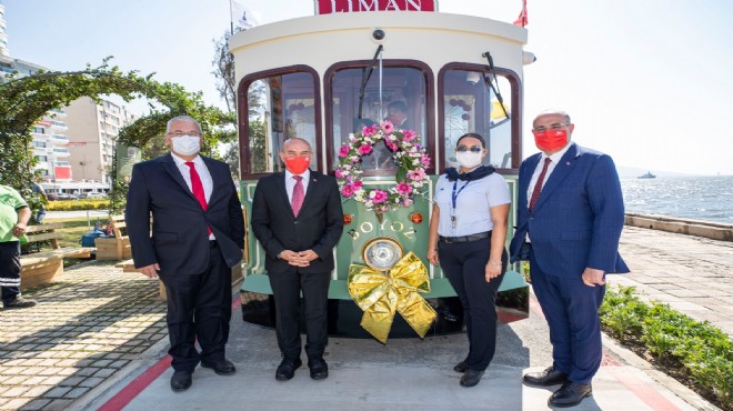 Konuşmaların ardından İzmir Büyükşehir Belediye Başkanı Tunç Soyer konuklarla birlikte nostaljik tramvayın ilk seferine katıldı.