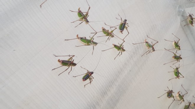 İlçedeki Akarca Ovası’nda görülen binlerce çekirge paniğe neden oldu. Havaların ısınmasıyla ortaya çıkan çekirge sürüleri bölge tarımına ciddi oranda zarar vermeye başladı. Biber, domates, kavun gibi şu an toprakta olan tüm mahsulleri yiyerek talan eden çekirgeler, bölge çiftçisini de kaygılandırmaya başladı. Barış Gül isimli çiftçi, çekirgelerin havaların ısınmasıyla birlikte ortaya çıktığını, yüksek tepelere yuvalanıp milyonlarcasının ovaya inerek ürünleri talan ettiğini söyledi. Bölgede çiftçilik yapan vatandaşlar çekirgeler için acil önlem alınmasını beklerlerken Tire Ziraat Odası Başkanı Halil İbişoğlu konuyla ilgili açıklama yaptı.