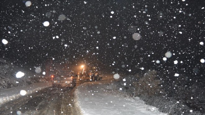 İzmir'in Kiraz ilçesinin yüksek kesimlerinde kar yağışı etkili oldu.