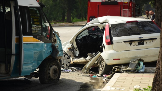 Kaza, saat 12.30 sıralarında Üniversite Caddesi Devlet Su İşleri (DSİ) binası önünde meydana geldi. Bornova-Altındağ seferini yapan S.C. (25) yönetimindeki 35 M 8501 plakalı şehir içi yolcu minibüsü, sola dönüş yapan Rafet Erhan (36) yönetimindeki 45 HC 755 plakalı otomobile çarptı. Minibüs, otomobili yaklaşık 30 metre sürükledi. Kazada, otomobil sürücüsü Rafet Erhan ve yanındaki Hasan Özterlikçi (60) ile minibüsteki 10 kişi yaralandı.