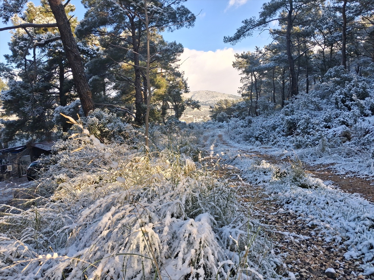 İzmir'in Urla ilçesinin yüksek kesimlerinde kar yağışı etkili oldu.