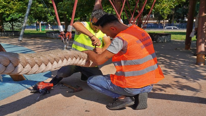 İzmir Büyükşehir Belediyesi vatandaşların parklardan konforlu bir şekilde ve güvenle faydalanmaları için bakım, onarım çalışmalarına hız kattı. İzmir Büyükşehir Belediyesi Park ve Bahçeler Dairesi Başkanlığı tarafından yürütülen çalışmalar kapsamında, çocuk oyun alanlarında ve koşu yollarında kauçuk zemin, spor alanlarında ise akrilik zeminlerde yenileme çalışması başlatıldı. Vatandaşlardan ve muhtarlardan gelen talepler doğrultusunda 11 ilçede toplam 30 parkta zemin yenileme çalışması tamamlandı. Yenileme ve onarımlar tüm hızıyla devam edecek.