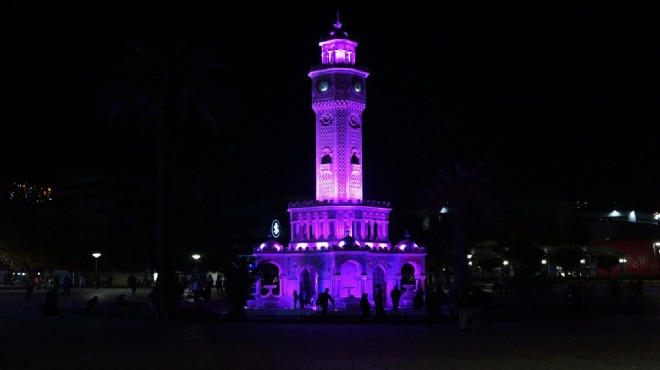 İzmir Saat Kulesi, alzaymır hastalığına dikkati çekmek amacıyla, hastalığın farkındalık rengi olan mor ışıkla aydınlatıldı.