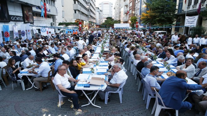 Konak Belediyesi’nin Ramazan ayı boyunca her gün farklı bir mahallede kurduğu iftar sofraları bu kez İzmir Esnaf ve Sanatkarlar Odaları Birliği ile Türkiye Meclis Üyeleri Birliği işbirliğinde Tarihi Kemeraltı Çarşısı’nda kuruldu. Hoşgörü Sofrası adını taşıyan bin 500 kişilik iftar yemeğine çarşıya alışverişe gelen vatandaşların yanı sıra siyasiler, sivil toplum örgütlerinden, esnaf ve ticaret odasından, kadın, engelli ve hemşehri derneklerinden çok sayıda temsilci katıldı.