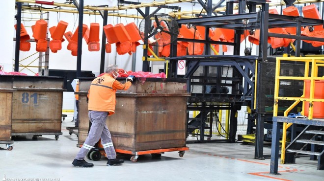 İzmir Büyükşehir Belediyesi İklim Değişikliği ve Sıfır Atık Dairesi Başkanlığı Atık Yönetim Tesisleri Şube Müdürü Seyda Yapıcı, 7 gün 24 saat faaliyette olan tesisin İzmir için son derece önemli olduğunu vurguladı. Kurumlardan kovalar ve konteynerlerle toplanarak tesise getirilen atıkların, 150 santigrat derecede 45 dakika boyunca prosesten geçirildiğini anlatan Seyda Yapıcı, bu işlemin ardından atığın kırıcı denilen makinelerden geçirilerek küçültüldüğünü, arındırıldıktan sonra evsel atık niteliği kazandığını söyledi. Bu işlemlerin ardından tehlikeli atığın, sağlık açısından taşıdığı riskler ortadan kaldırılıyor.