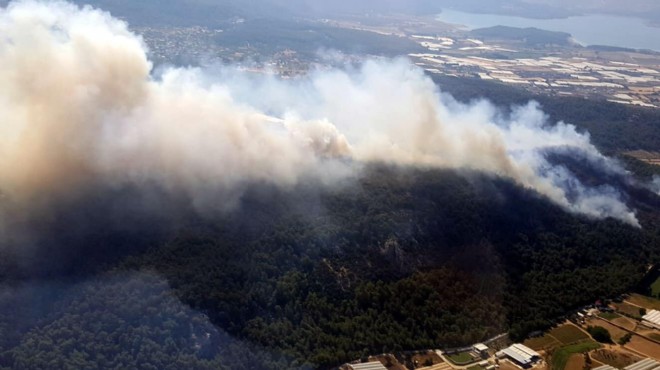 İzmir'in Menderes ilçesindeki yangın için İzmir Orman Bölge Müdürlüğüne bağlı 2 yangın söndürme helikopteri, 1 uçak ve 10 arazöz ile 3 dozer sevk edilmişti.